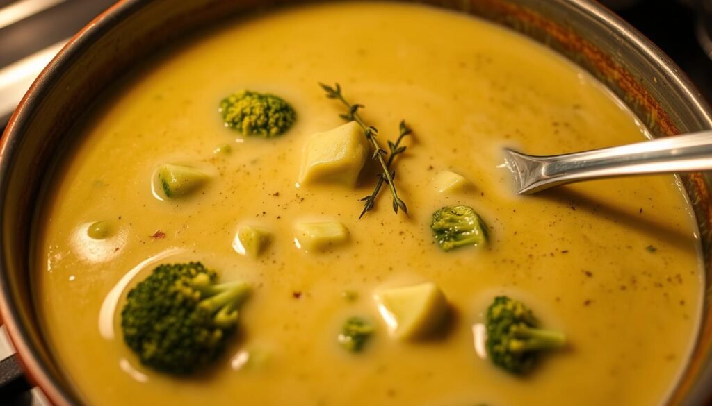 A bit of garlic, onion, and nutmeg can make it even better. For a detailed recipe, check out this creamy broccoli soup recipe. It’s great for meal prep or a quick warm-up.
